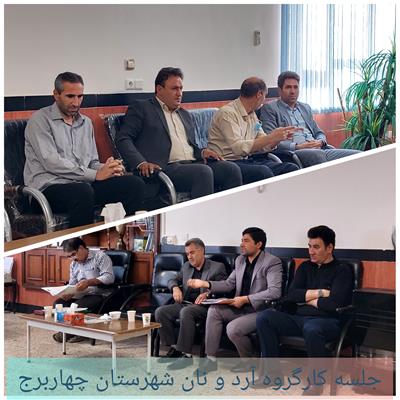 جلسه کار گروه آرد و نان شهرستان چهاربرج در روز دوشنبه مورخ 1401/05/08 با حضور فرماندارو دیگر اعضا در محل فرمانداری برگزار گرردید.